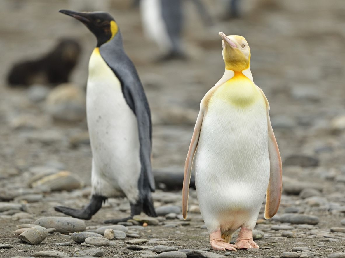 Необычный цвет птицы объясняется генетической мутацией — изабеллинизм. Особенность не вредит здоровью пингвинов.
