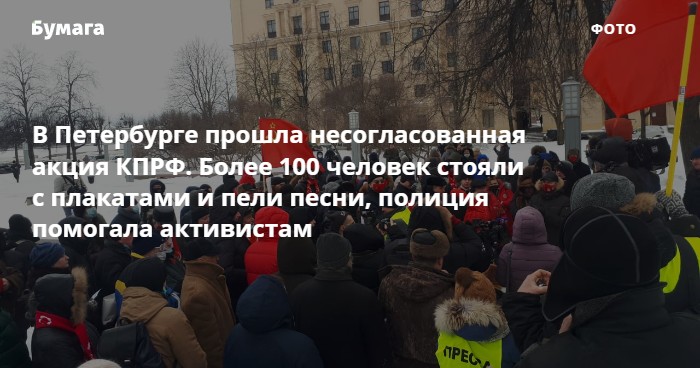 Днем 23 февраля в Петербурге прошла несогласованная акция КПРФ в честь Дня советской армии. Об этом сообщило местное отделение партии.