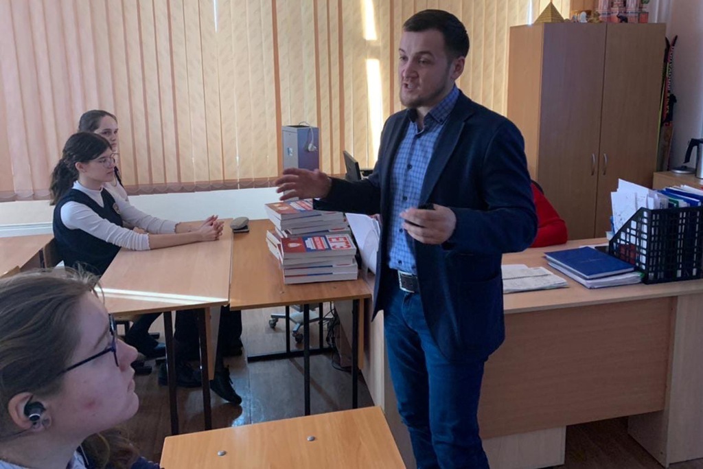 Один из высокопоставленных новосибирских единороссов показал агитационную символику школьникам прямо в здании образовательного учреждения. Он объяснил это «уроком мужества».