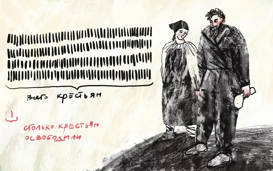 Начиналось всё очень неплохо: надо освободить крестьян, ведь Россия не должна отставать от европейских стран! К тому времени крепостное право уже было отменено во Франции, на половине территории Австрийской империи, точнее — в Венгрии, и вовсю шла подготовка к его отмене в Пруссии. В 1801 году императором было даровано право покупки земли всем сословиям, кроме крепостных, а в 1803 был издан указ «О вольных хлебопашцах» , разрешавший помещикам отпускать своих крепостных на волю, если они сами будут на это согласны. Освобождение предполагалось без земли, точнее — на усмотрение помещика. Целых полпроцента крестьян были отпущены по этому указу при Александре Первом, но почти никто из них не купил землю — на это просто не было денег. Конечно, такой указ лучше, чем оставление крепостного права в неизменном виде, но, можно подумать, что помещики не имели права давать вольную своим крепостным и без императорского указа? Имели.