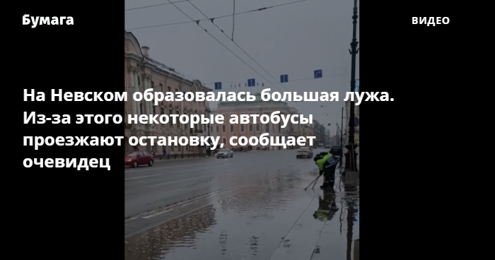 По словам очевидца, некоторые автобусы и троллейбусы не подъезжают к остановке «Большая Конюшенная улица». Из-за проезжающих мимо автомобилей лужа регулярно выходит из краев, добавляет читатель.