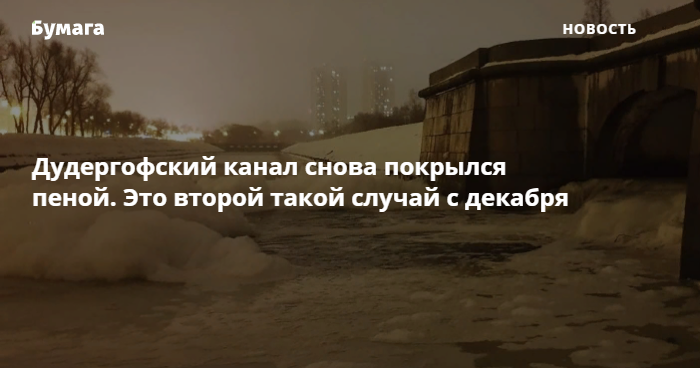 Это второй такой случай, зафиксированный за последнее время. Пену из Дудергофского канала ранее вынесло на дорогу в конце декабря. Тогда причиной появления пены, предположительно, стал кратковременный сброс вещества неизвестного происхождения с высоким содержанием синтетических поверхностно-активных веществ, которые используются при производстве моющих средств. При этом местные жители в комментариях пишут, что такое происходит регулярно.