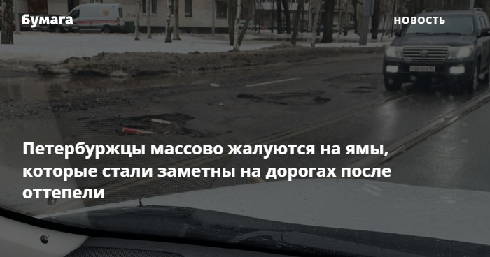 Пользователи в соцсетях массово жалуются на ямы, которые стали заметны на петербургских дорогах после оттепели. Горожане сообщают, что пробивают колеса из-за дыр в асфальте и ломают бамперы.