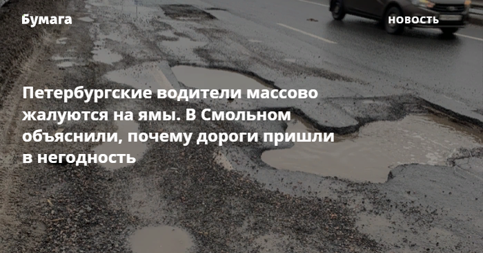 Петербургские водители в соцсетях массово жалуются на состояние дорог — после схода снега и льда они покрылись глубокими ямами. Ситуацию прокомментировал комитет по развитию транспортной инфраструктуры.