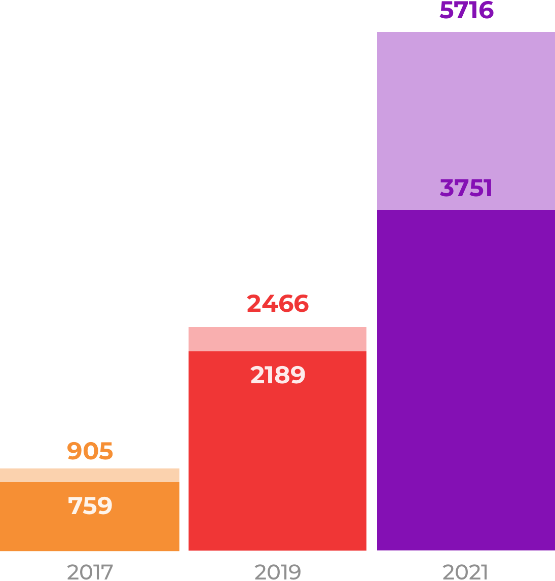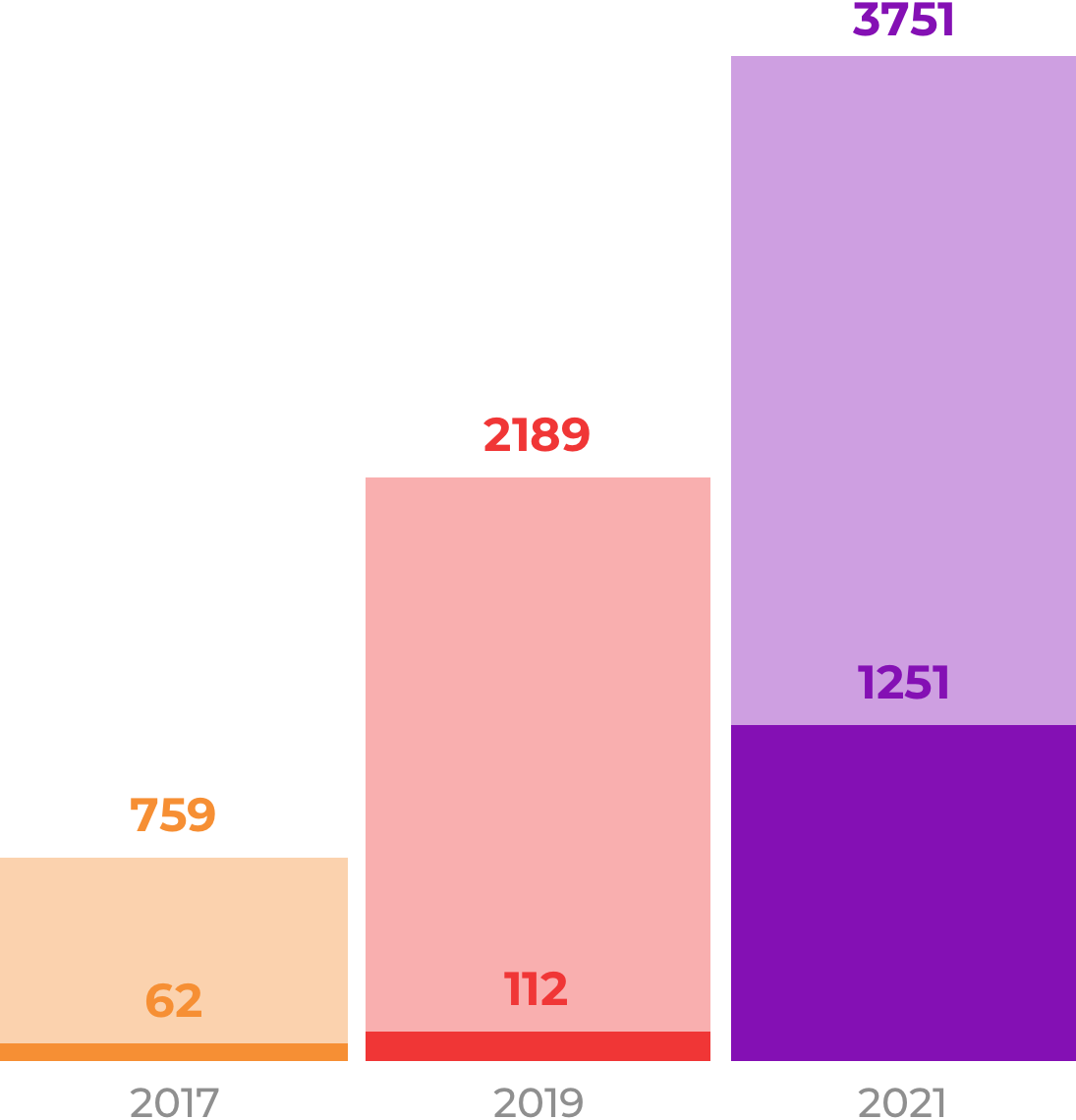 Больше половины постановлений за 2021 год не опубликованы на сайтах московских судов до сих пор, поэтому при подсчетах мы могли опираться только на данные уже опубликованных документов и информацию, опубликованную пресс-службой Мосгорсуда. Тем не менее даже имеющийся объем данных позволяет судить о масштабах преследований участников протестных акций в 2021 году по сравнению с более ранними митингами.