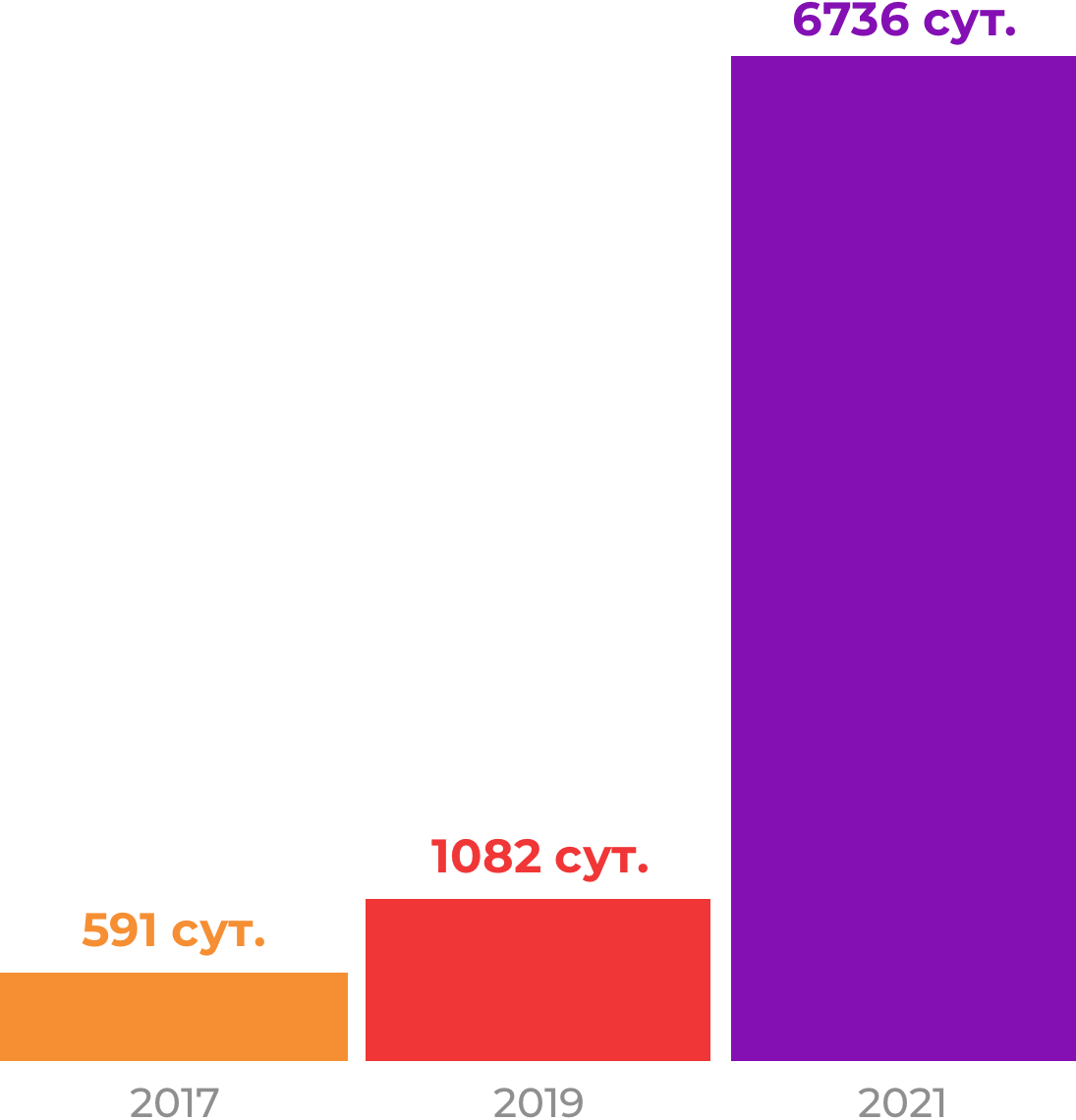 О том, как поменялось отношение власти к протестам, говорят суммарные цифры — общее число суток, на которые осуждены все протестующие, и общая сумма штрафов, которые они должны заплатить. В 2021 году участники митингов провели под арестом в общей сложности как минимум 6 736 суток (больше 18 лет) — это почти в пять раз дольше, чем после акций прошлых лет. А вот общая сумма штрафов, которая в скором времени окажется в государственной казне, составляет лишь немногим больше 6 млн рублей — сумма будет расти, так как московские суды на сегодняшний день рассмотрели далеко не все дела об административных правонарушениях, связанных с акциями протеста. Это смешная цифра на фоне, например, 2019 года, когда в сумме граждане заплатили больше 15 млн рублей, но им почти не присуждали арест — данные приводятся, исходя из анализа судебных карточек, опубликованных в открытом доступе.