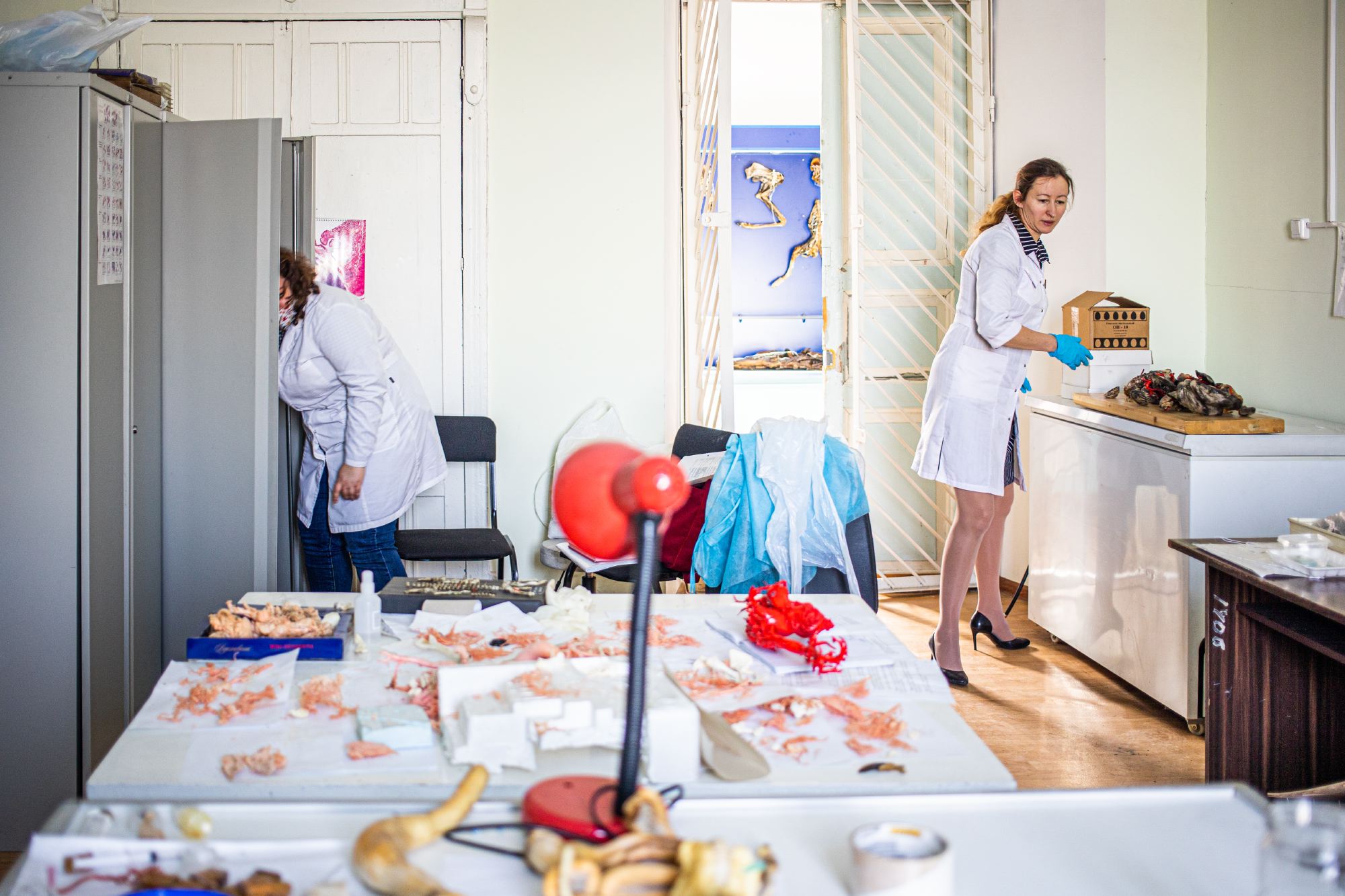 Кафедра анатомии университетаФото: Антон Климов для ТД И продолжает: «Очень интересная ротовая полость, твердое небо — с рисунком. Очень интересный выход главного сосуда из сердца, он имеет ампулообразное расширение. Почка у нерпы множественная, как гроздь винограда. Такие есть у белого медведя или дельфина.