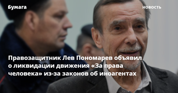 Правозащитник Лев Пономарев объявил о ликвидации общественной организации «За права человека» из-за ужесточения законодательства об иностранных агентах. Об этом заявил в эфире телеканала «Дождь».