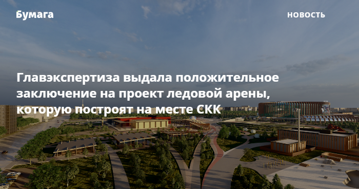 Главгосэкспертиза выдала положительное заключение по проектной документации новой ледовой арены в Петербурге, которую возведут на месте разрушенного СКК, сообщили «Бумаге» в пресс-службе «СКА Арены». Теперь компания может приступить к строительству.