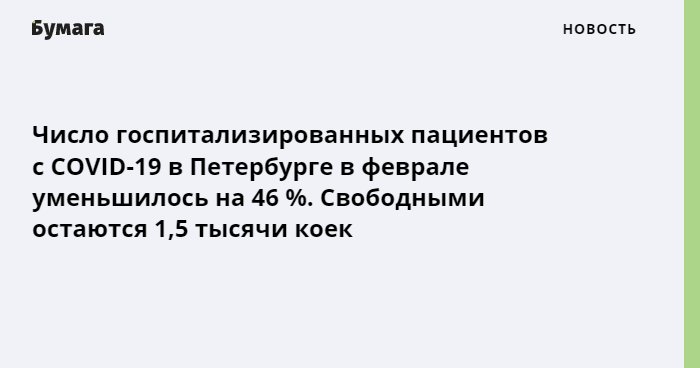 Число госпитализированных пациентов с COVID-19 в Петербурге в феврале уменьшилось на 46 %