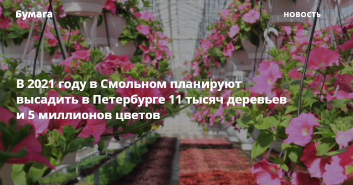 В 2021 году в Смольном планируют высадить в Петербурге 11 тысяч деревьев и 5 миллионов цветов