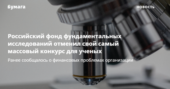 Российский фонд фундаментальных исследований отменил свой самый массовый конкурс для ученых