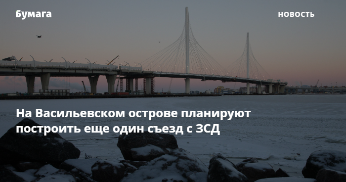 На Васильевском острове планируют создать новый съезд с ЗСД. Об этом сообщает «Фонтанка».