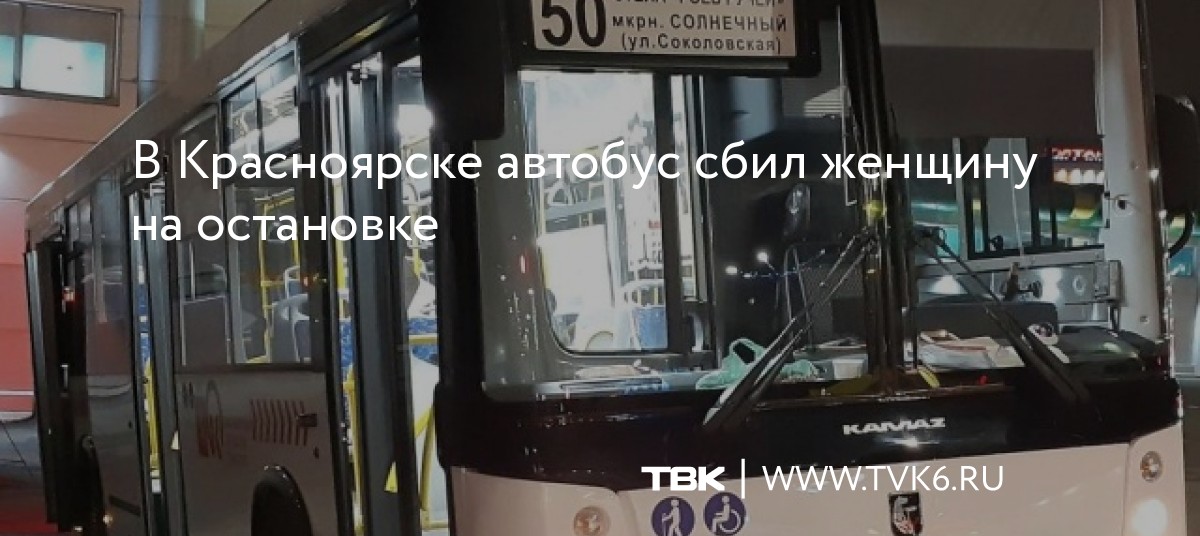 В пресс-службе ГИБДД «ТВК Красноярск» рассказали, что автобус наехал на 56-лентюю женщину. ДТП произошло утром 2 марта. Жертву происшествия госпитализировали с травмами, сейчас она находится в больнице.По словам очевидца, автобус маршрута №50 сбил женщину, которая стояла на остановке. Когда автобус подъезжал, женщина начала подходить к транспорту, но поскользнулась и попала под колеса.