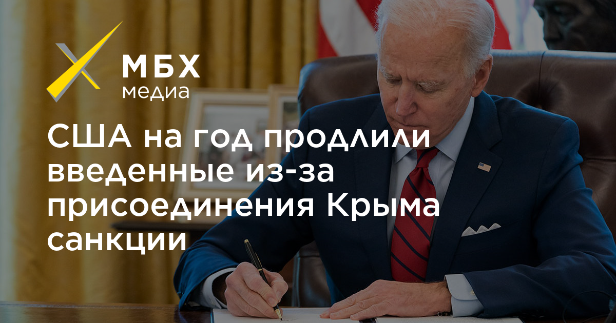 Президент США Джо Байден продлил на год санкции, введенные из-за присоединения Крыма к России. Документ опубликовал Федеральном реестре (pdf.).