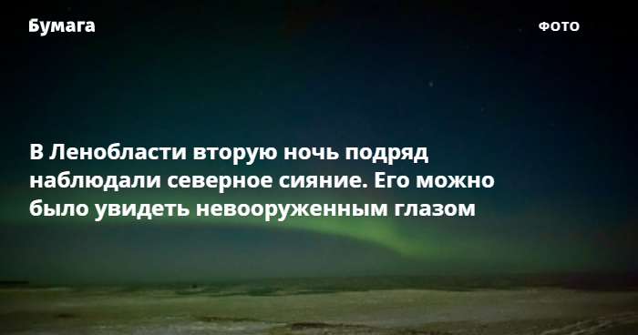 Фотографии делали с Осиновецкого маяка и из поселка Моторное. Некоторые из пользователей рассказали, что наблюдали в том числе предыдущее сияние. «В этот раз оно было слабее и ближе к горизонту, но все равно отчетливо было видно невооруженным глазом», — написала одна из очевидиц.
