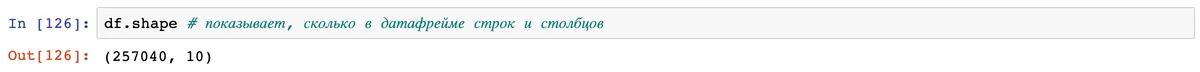 Если мы хотим только узнать, сколько в нем строк и столбцов, используем атрибут shape.