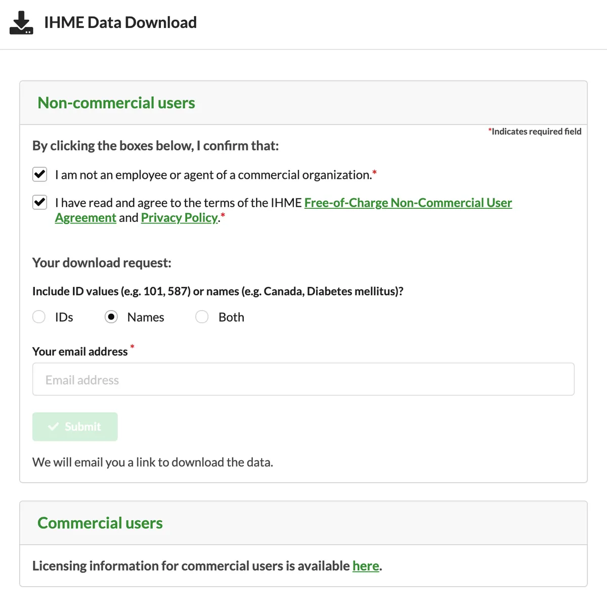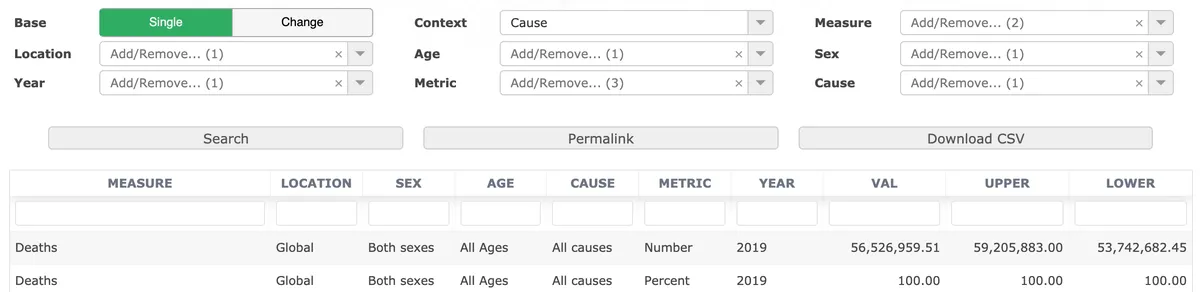 Сегодня мы будем работать с данными по смертности людей от разных причин. Перейдем на сайт Института оценки показателей здоровья США и выберем нужные показатели смертности по странам.