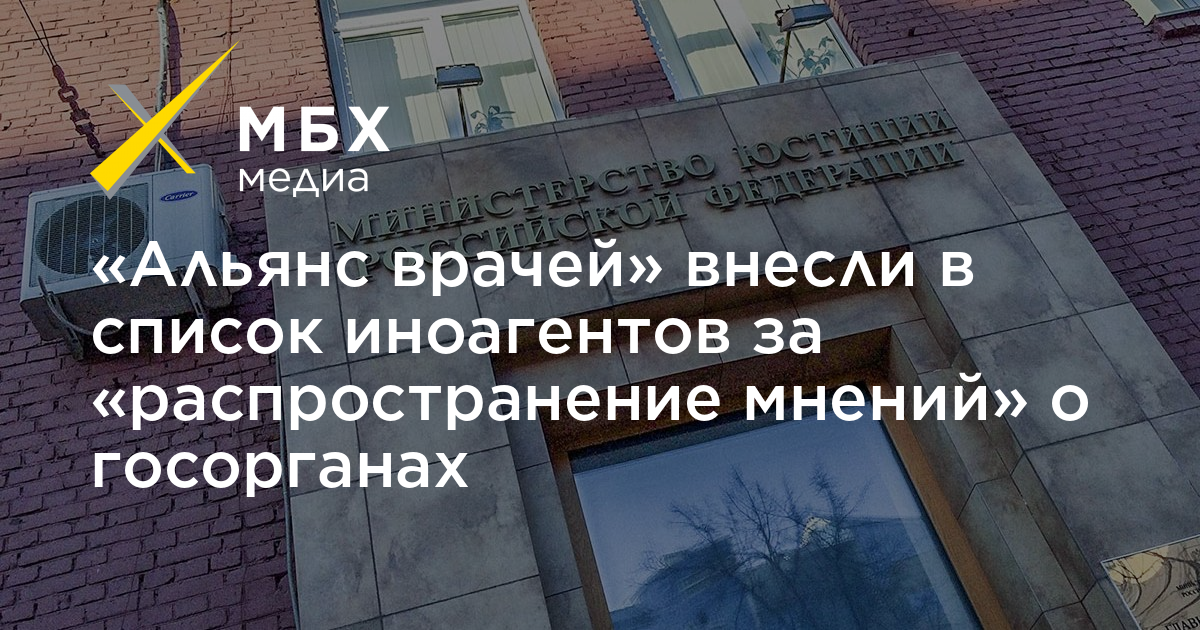 «Альянс врачей» внесли в список иноагентов за «распространение мнений» о госорганах