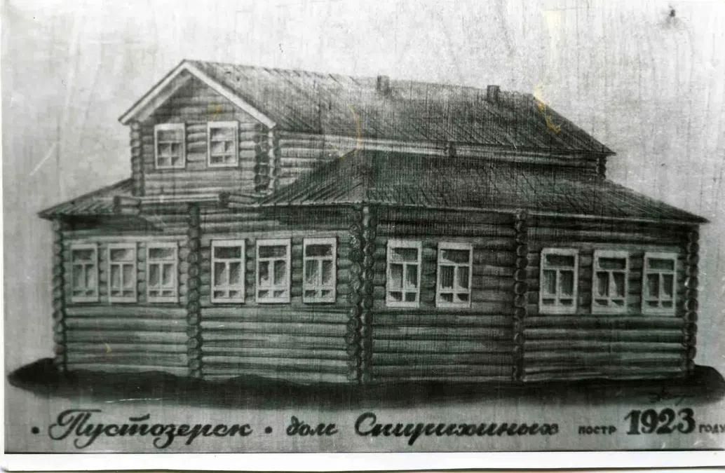 Так. А вот наш дом, Спирихиных. Рядом с ним был когда-то старый, предыдущий, в котором жил мой прадед, а этот построен в 1923 году, после него уже ничего в Городке не строили. Это был последний дом, он сейчас стоит в деревне Устье, его перевезли, но больше там нет никого из Спирихиных.