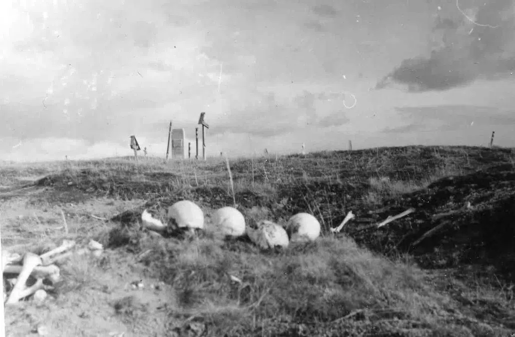 А вот кладбище. Черепа тут всегда были, кости. Лежали прямо кучами на земле. Их выдувало оттуда ветром. Ну а как? Вот зимой умрет тут человек, его же глубоко не закопаешь, надо же долбить. Так что черепа сами появлялись. Вот так в детстве возьмешь череп и удивляешься — все зубы на месте. Как жили! Это вот они жили на кислой рыбе. Кислую рыбу ели, и все зубы были на месте. Вот тебе и витамины. Безо всяких фруктов, без ничего.