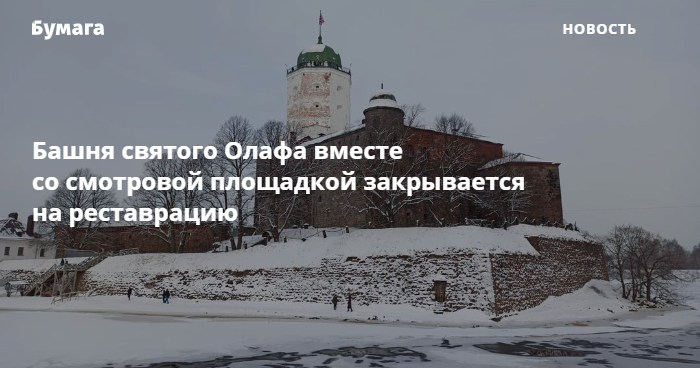 Башня святого Олафа вместе со смотровой площадкой 9 марта закрывается для продолжительной реставрации. Об этом рассказали в пресс-службе Выборгского музея-заповедника.