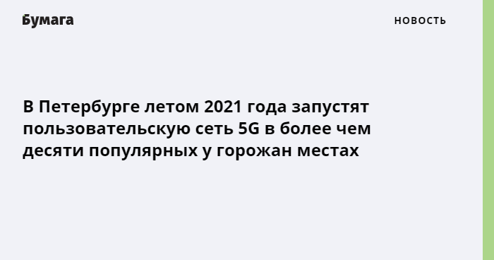 Летом 2021 года МТС запустит в Петербурге пользовательскую сеть 5G в более чем десяти популярных у горожан местах. Конкретные точки пока не указываются. Об этом сообщил Павел Коротин, директор филиала МТС в Петербурге и Ленобласти.