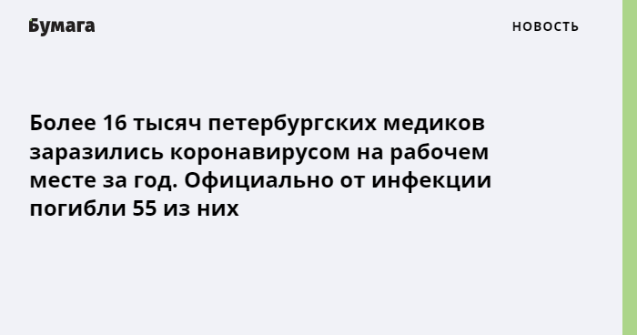 В Петербурге, по официальной информации, коронавирусом заразились 16,5 тысячи медицинских работников. Об этом сообщил председатель комитета по здравоохранению Дмитрий Лисовец в эфире телеканала «Санкт-Петербург», посвященном годовщине с момента регистрации первого случая заражения COVID-19 в Петербурге.
