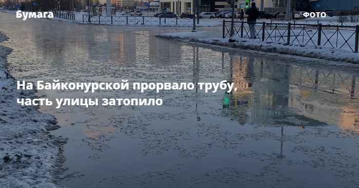 Утром 9 марта на Байконурской прорвало трубу, из-за чего часть улицы затопило. Об этом сообщают очевидцы в соцсетях.