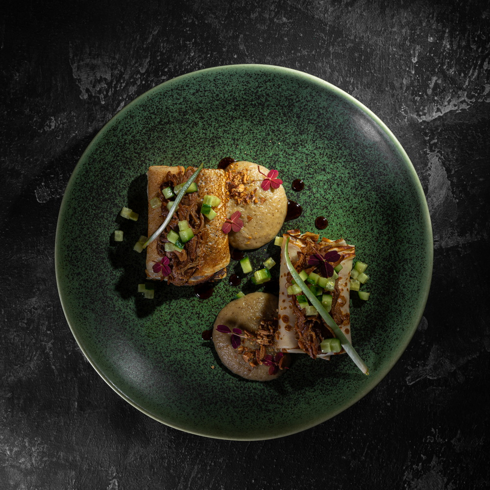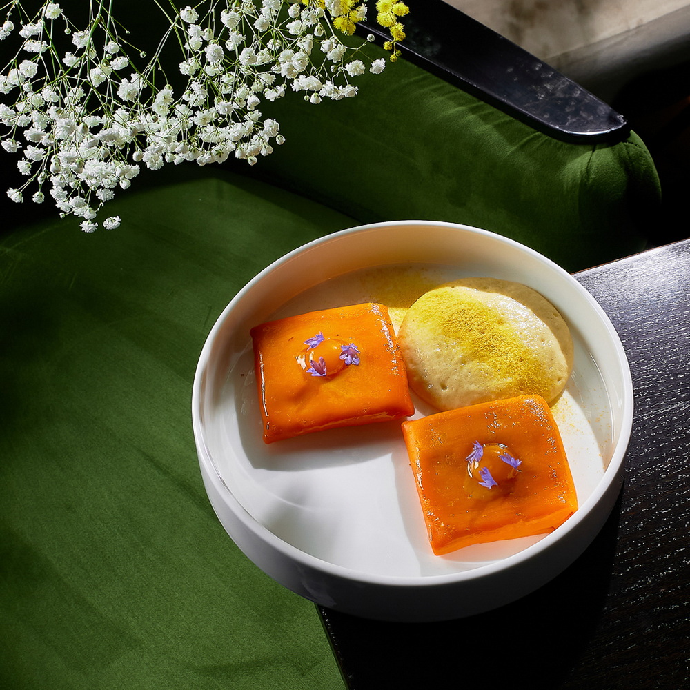 В ресторане на Московском проспекте Масленицу переосмысляют с паназиатских позиций: шеф Денис Прохоров предлагает гостям паровые блинчики из рисового теста с маринованными креветками и блины с домашней нутеллой и бананом (это блюдо пользуется популярностью в Таиланде). Самой любопытной позицией выглядит парата с рагу из говяжьих хвостов — вариация на тему среднеазиатской лепешки из слоеного теста.
