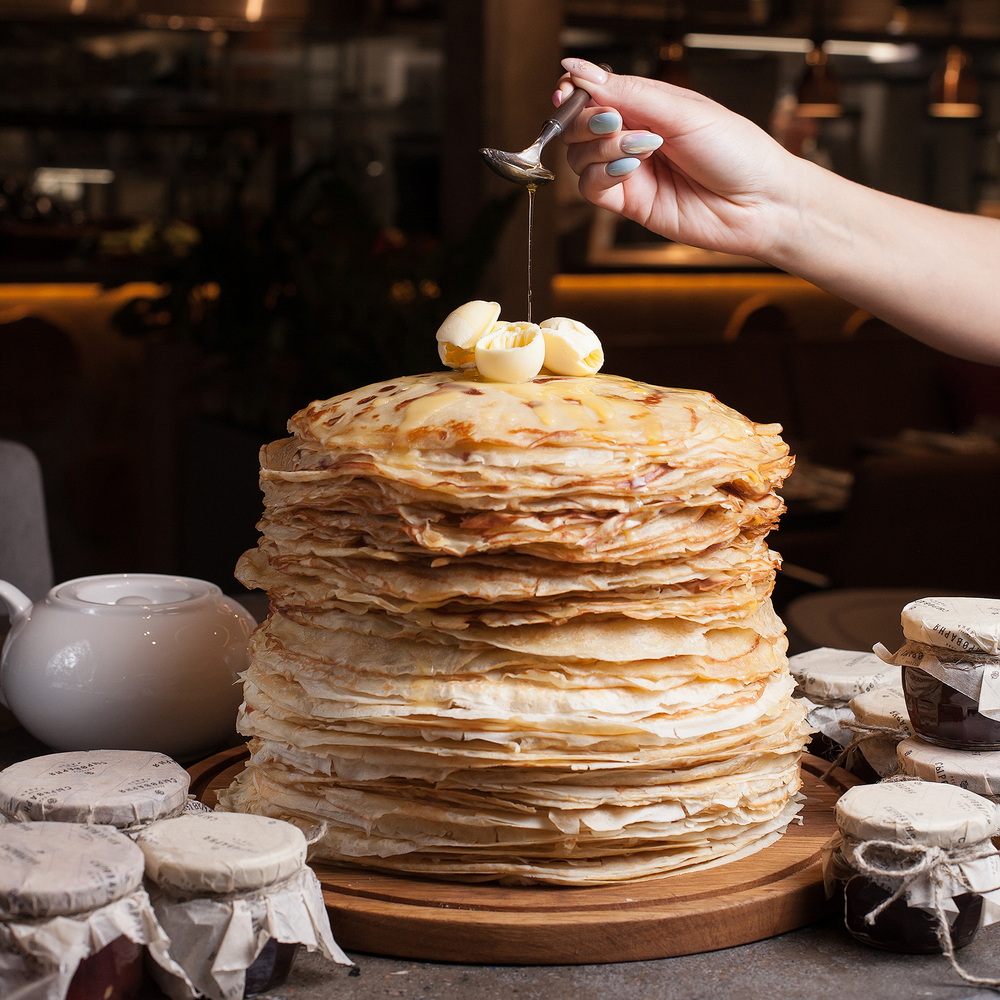 В 2021 году масленичная неделя началась 8 марта, и в меню петербургских кафе и ресторанов появились блины. «Бумага» рассказывает, где можно попробовать различные вариации этого блюда: от блинов с красной икрой и шампанским до блинчиков с гуавой и кремом из попкорна.