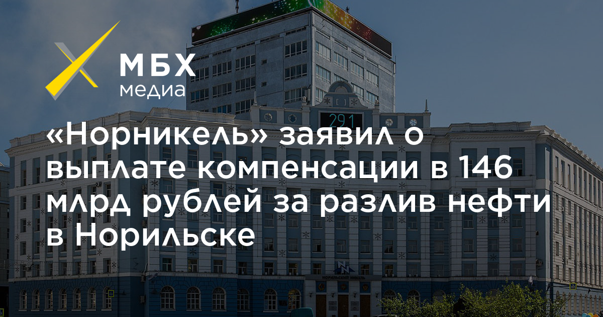 «Норникель» заявил о выплате компенсации в 146 млрд рублей за разлив нефти в Норильске
