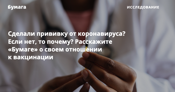 А как вы относитесь к вакцинации против COVID-19? Пройдите анонимный опрос «Бумаги» — позже мы опубликуем результаты. Ответы на вопросы займут у вас 2 минуты.