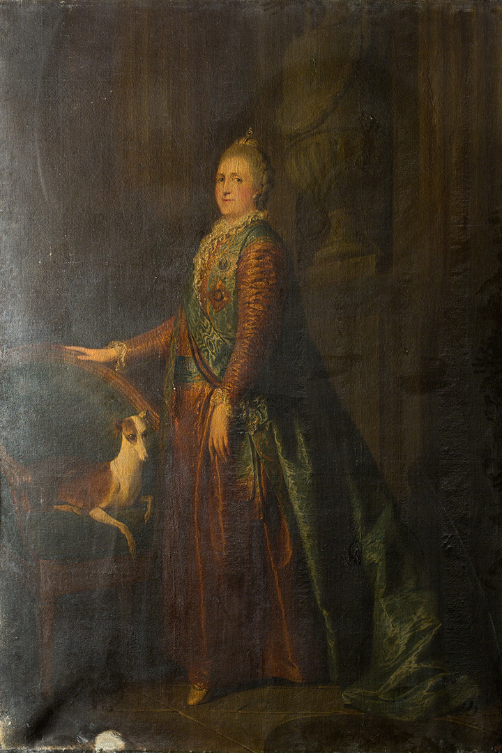 Первой отреставрированной картиной стал портрет Екатерины II, написанный Пьером-Этьеном Фальконе. Как рассказывают в Эрмитаже, этот портрет выделяется «мягкостью» выражения лица императрицы, что не присуще официальным парадным образам монархов.