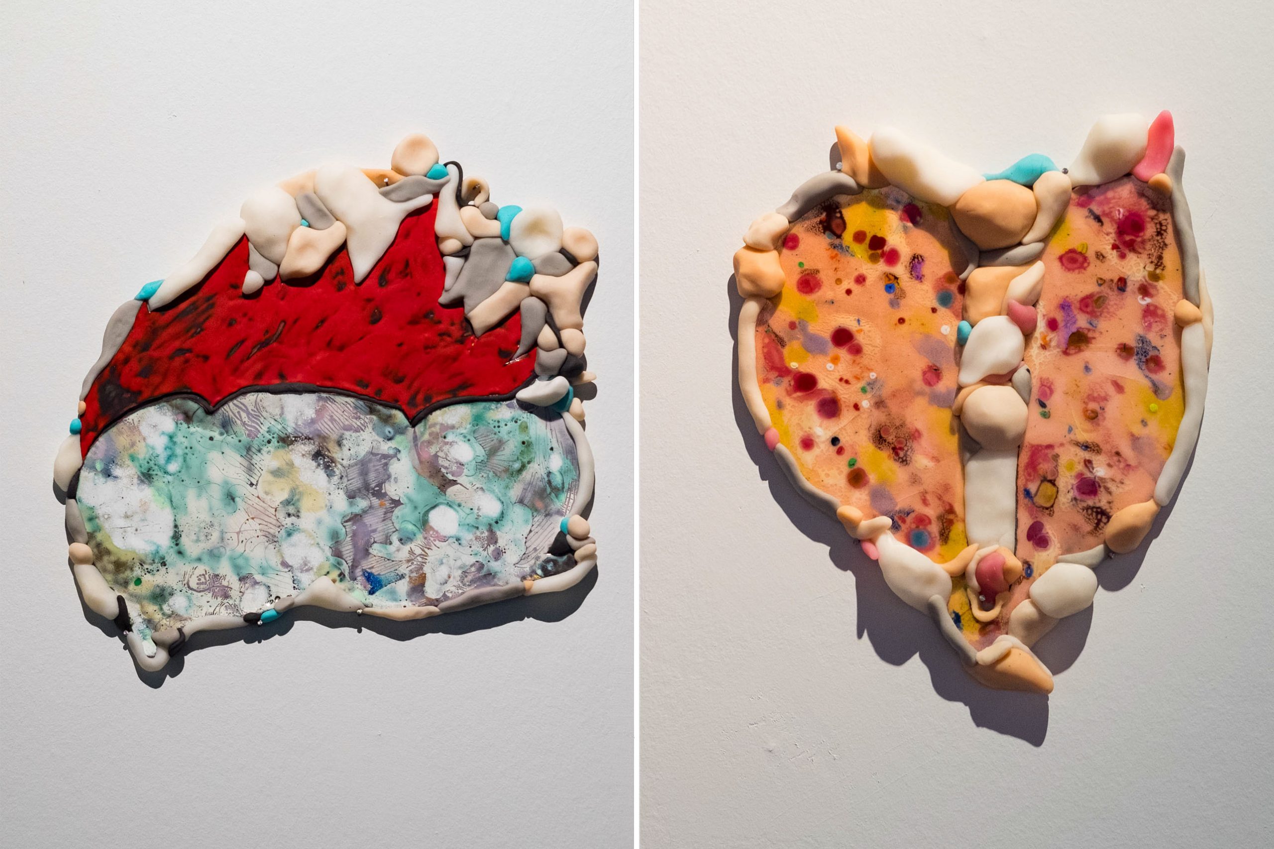 Объект Анны Мартыненко «Пакет» создан с использованием композитной панели и микроэлектроники (эта технология делает работу динамичной), а «Отличница» Аси Маракулиной — из металла, чугуна, ткани с вышивкой и красками. Другие авторы используют также лентикулярную печать, видео или даже машинное обучение. Из живописи на выставке представлены, например, триптих Стаса Багса «Так гораздо веселее», картина Татьяны Ахметгалиевой «Я маленький и грустный робот» и яркая и немного тревожная «Встреча» Леонила Цхэ.