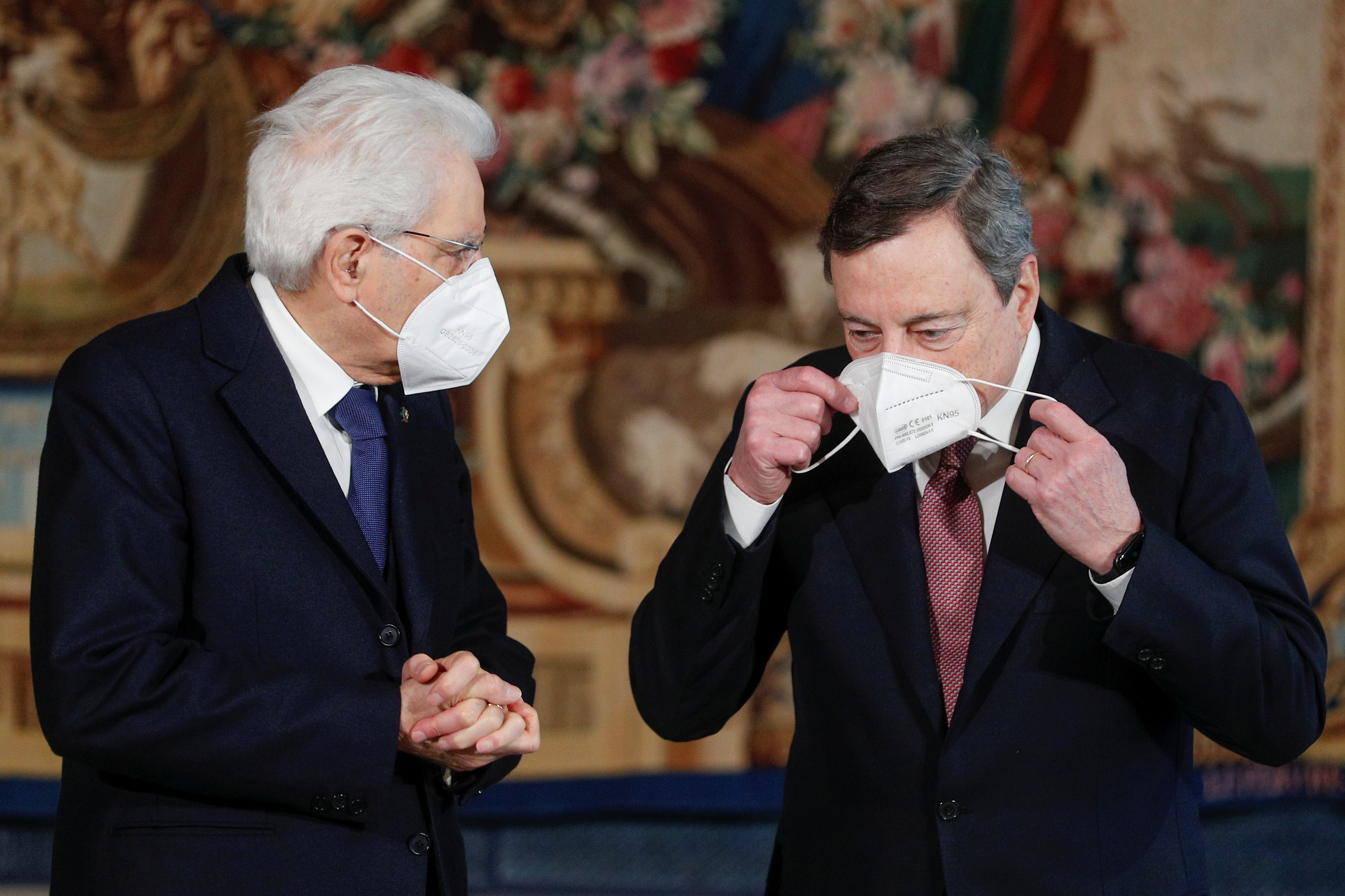 Премьер-министр Италии Марио Драги (справа) и президент республики Серджо Маттарелла, Рим, 13 февраля 2021