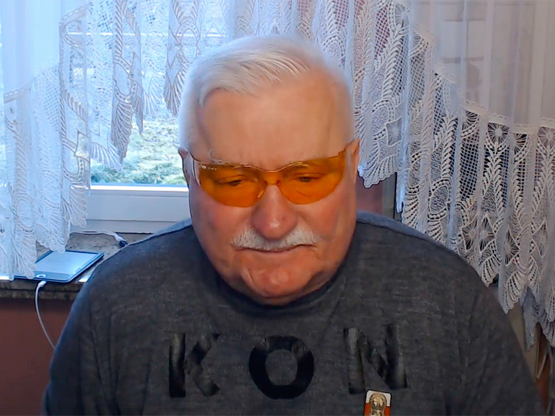 На видео Валенса также говорит, что не боится никого, кроме Бога "и немножечко жены".