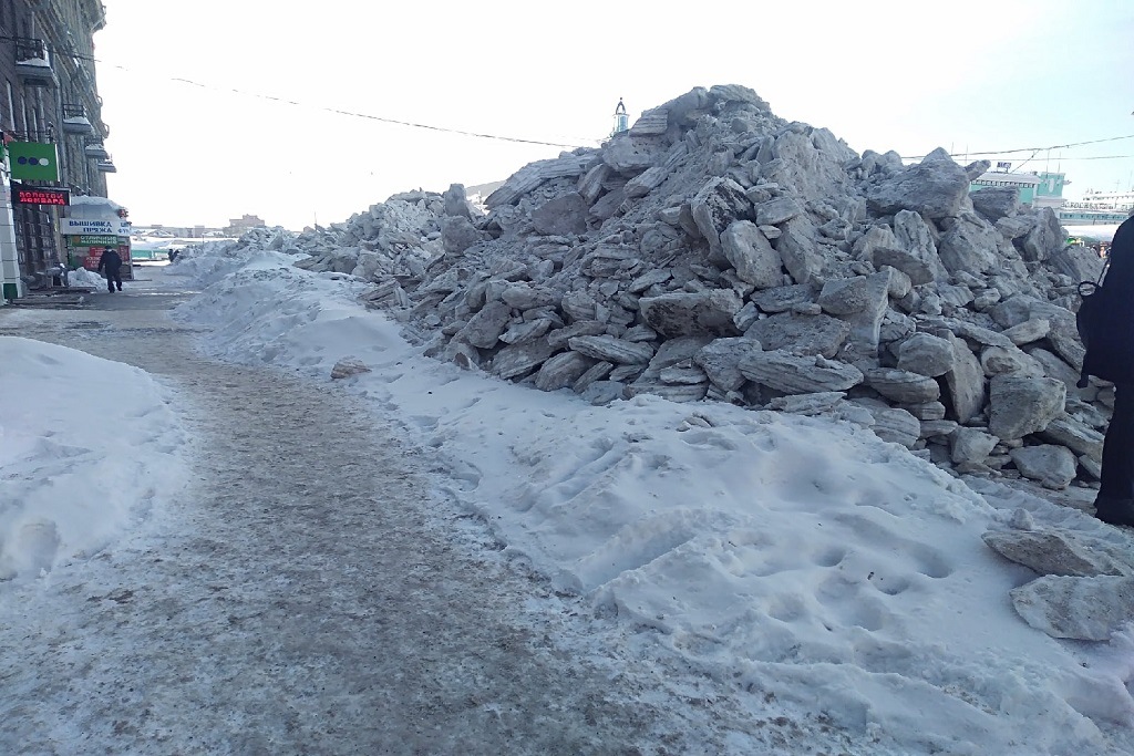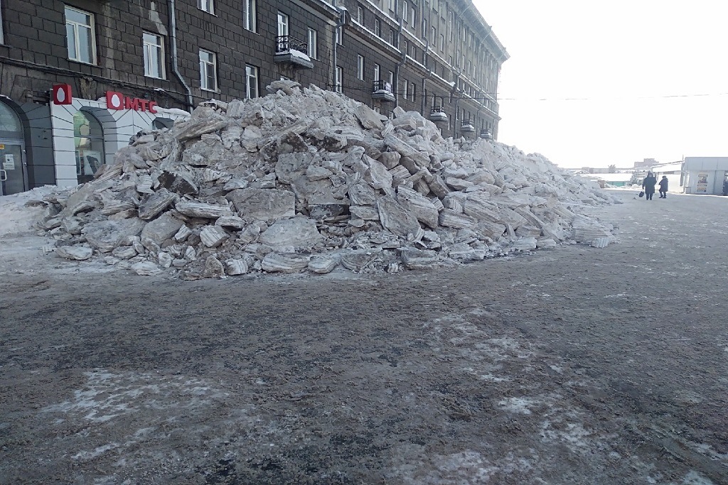 Горы ледяных глыб у новосибирского вокзала. Фото
