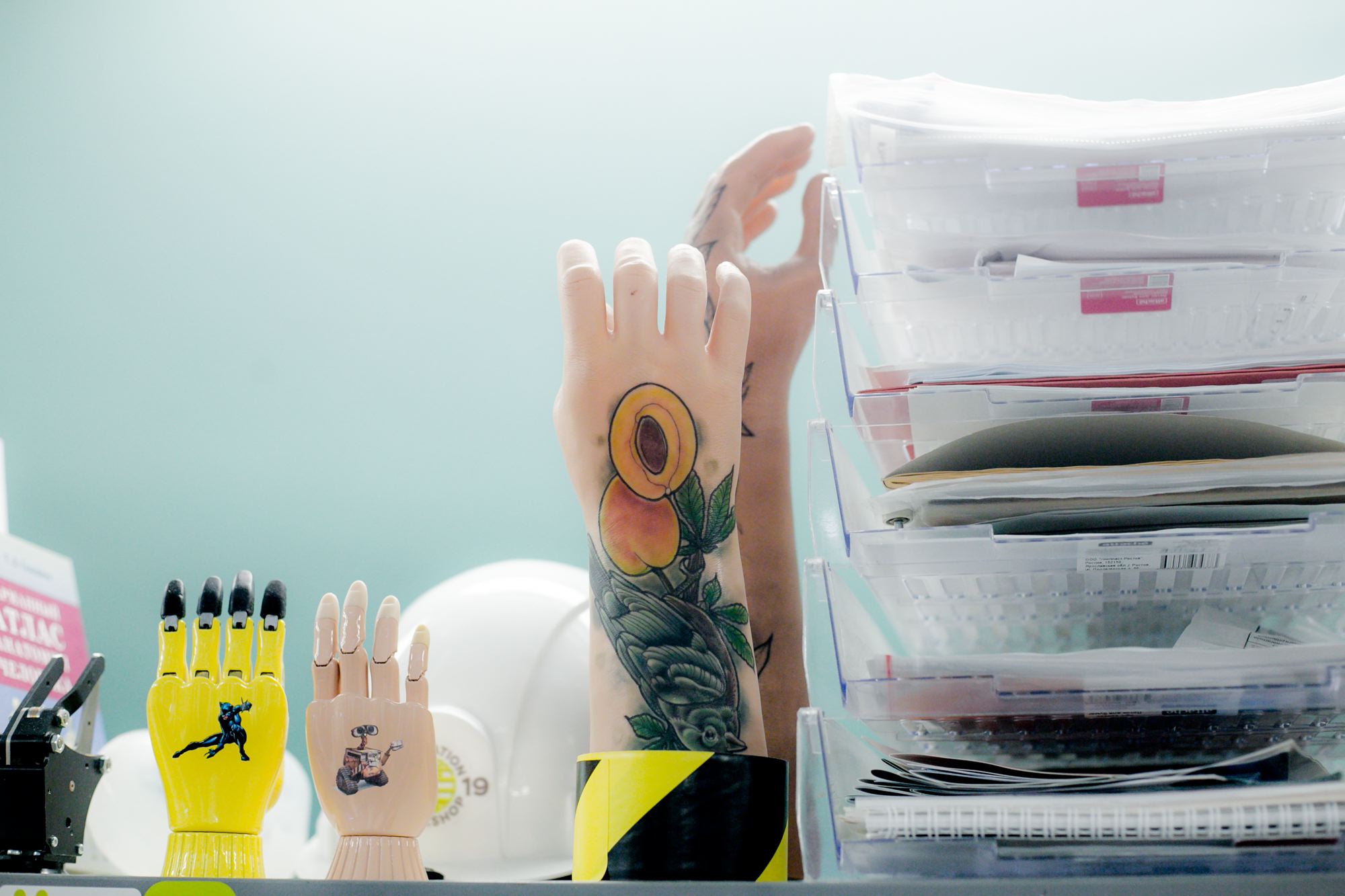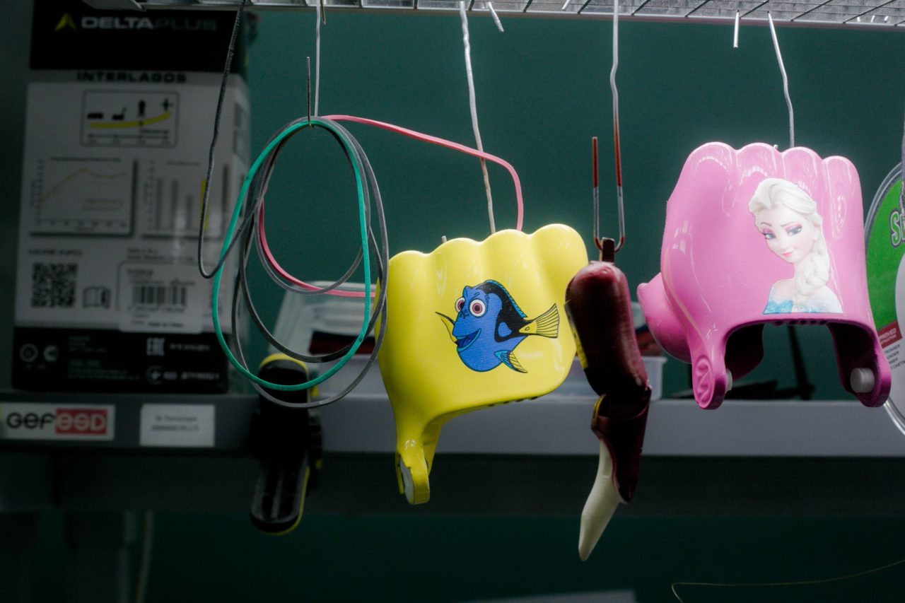 В центре стола в офисе «Моторики» стоит небесно-голубая киби-рука. Инновационный протез внешне похож на руку киношного терминатора. Пальцы сгибаются как настоящие, кисть делает хват. Тяги, рычаги, механизмы — анатомия протеза вся как на ладони. «После моего гипсового он невесомый, легко снимается, легко надевается», — говорит Наталия. Такой гаджет, конечно, не заменит реальную руку, но здорово облегчит жизнь своему хозяину. Протез учитывает индивидуальные анатомические особенности будущего пользователя и его цветовые предпочтения. Дети обожают супергероев и мультяшные картинки. Выбор взрослых прозаичнее.
