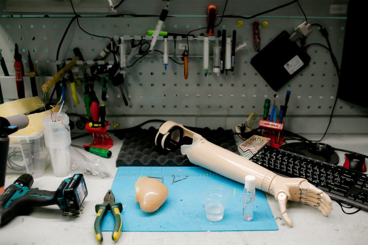 Про свои изыскания и эксперименты Хлебников писал и на «Хабре». Именно там он познакомился с инженером-робототехником Ильей Чехом, основателем компании W. E. A. S. Robotics. Хлебников предложил запустить социальный проект — делать бесплатные функциональные протезы рук для детей. Поначалу предприниматели пытались брать готовые решения. Но их качество и функционал не выдерживали никакой критики. Решили разрабатывать свой. Через два года экспериментов и десяток прототипов у них получился годный вариант. Первый протез надели на руку полуторагодовалой девочке — и она сразу цапнула новой рукой за хвост пробегавшего мимо кота. В 2018 году к тяговым добавились и первые собственные бионические протезы. А доля заказов протезов для взрослых кратно выросла. Сейчас на детские протезы приходится всего 35-40 процентов.