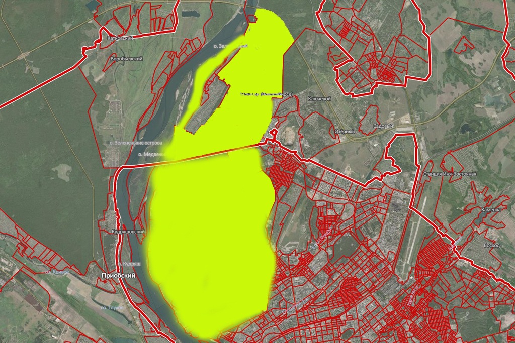 Красная линия, разделяющая территорию — граница Новосибирска и Новосибирского района