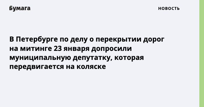 В Петербурге по делу о перекрытии дорог на митинге 23 января допросили муниципальную депутатку, которая передвигается на коляске