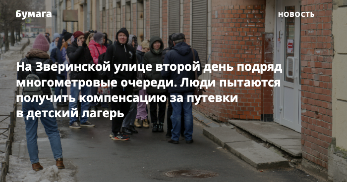 В Петербурге на Зверинской улице уже второй день собирается огромная очередь из родителей, которые хотят успеть получить сертификаты на каникулы в детских лагерях отдыха. Об этом сообщает корреспондент «Бумаги» Евгений Курсков.