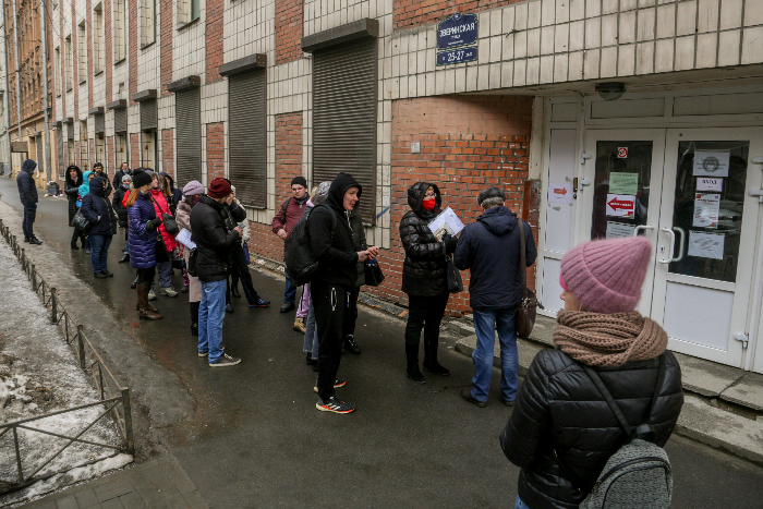 К 8 утра на Зверинской было около 60 человек, а около 11 часов — уже примерно 90 человек. Очередь двигалась быстро, и каждые 15–20 минут из здания выходили люди с сертификатами.