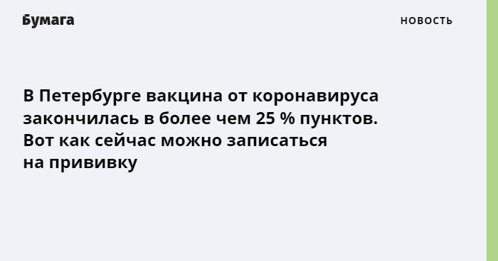 Сейчас запись ведется в том числе на эту и следующую недели. Как убедилась «Бумага», в большинстве районов Петербурга можно записаться минимум в одну поликлинику — через сайт «Здоровье петербуржца». Некоторые горожане жалуются, что сайт показывает наличие талонов, хотя на самом деле их нет в поликлинике. В таком случае можно позвонить по номеру 122, где вам должны подобрать пункт. Если запись отменяют из-за нехватки вакцины, жителей предупреждают и перенаправляют в другой пункт.