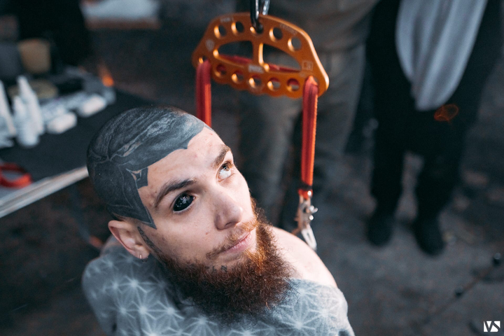 — Я занимаюсь подвешиваниями [крюками за кожу] год. Мой мастер по подвешиваниям Саша Шанти предложила мне сделать прыжок, [зацепив крюки] за пятую точку. Она объяснила, что в России я буду первым, в мире — вторым. Саша знает, что я подвешиваюсь и уже прыгал, подвесившись за спину. Знает, что я терпеливый и не сольюсь.