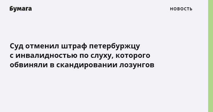 Суд отменил штраф петербуржцу с инвалидностью по слуху, которого обвиняли в скандировании лозунгов