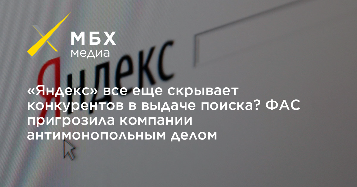 Федеральная антимонопольная служба пообещала компании «Яндекс» возбудить дело, если сервис продолжит игнорировать конкурирующие с ней компании в поисковой выдаче. Обеспокоенность этим накануне выразили в открытом письме 20 российских компаний, среди которых Profi.ru, Avito, «ЦИАН», Okko и «Амедиатека». «МБХ медиа» рассказывает о сути претензий, с которыми все стороны пытаются разобраться не первый год.