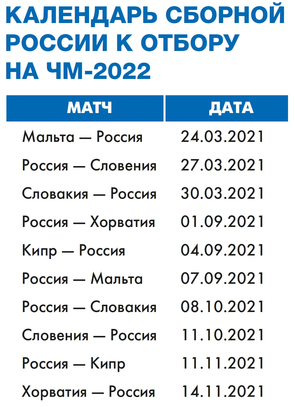 Сборная России по футболу 24 марта начинает на Мальте борьбу за путевку на ЧМ-2022 в Катар