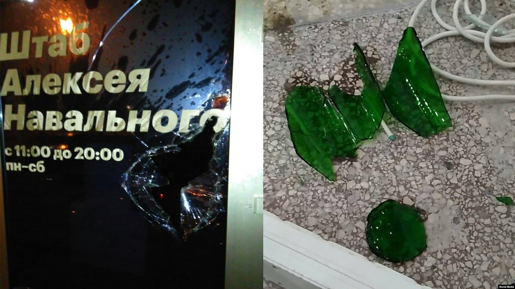 Злоумышленник был заснят на камеру видеонаблюдения, запись опубликована штабом Навального.